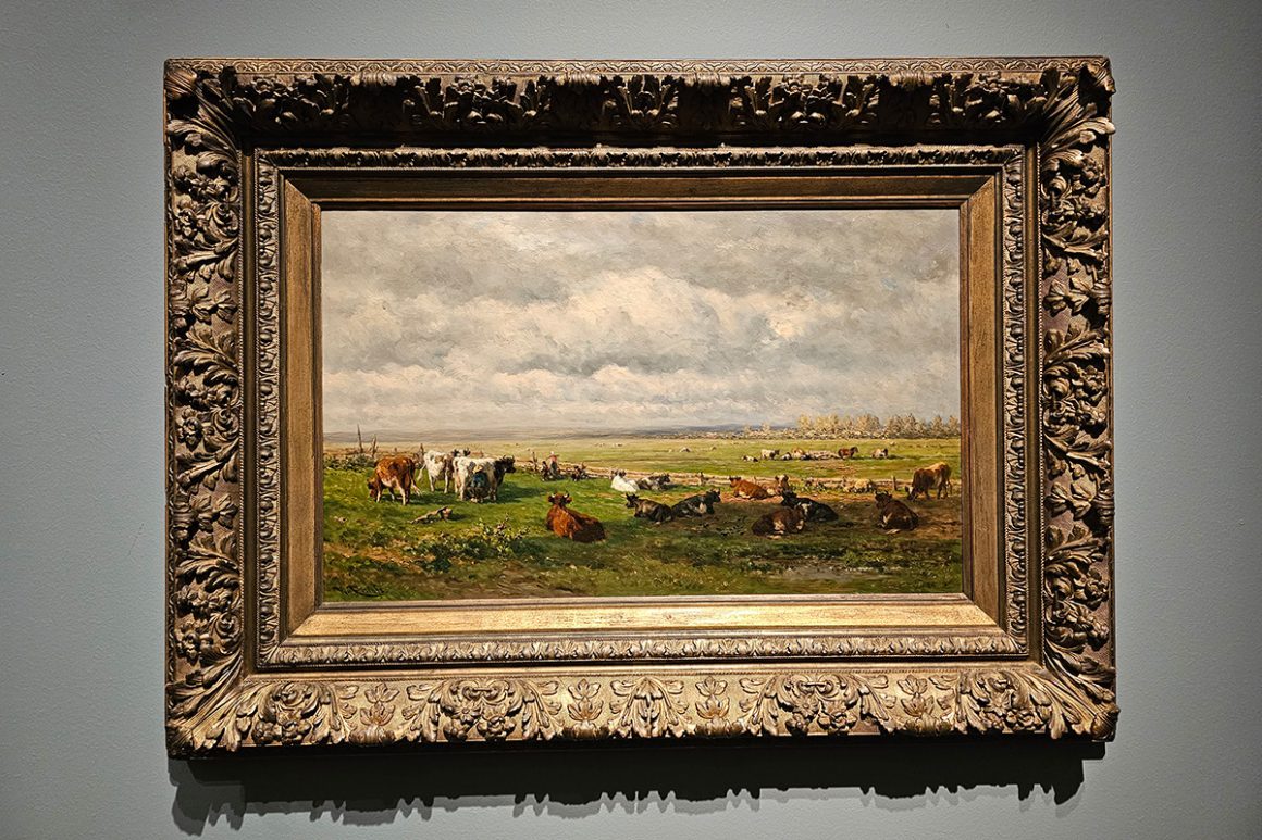 Als boerin kan ik er natuurlijk niet omheen. Ik moet op zoek naar schilderijen waar koeien op staan. Of weidse landschappen. Ik geniet dan ook van het schilderij ‘Weidelandschap met vee’ van Victor Roelofs (1822-1897). Door de kunstenaars van de Haagse school werd het groene, vlakke polderlandschap met blauwe luchten geschilderd. Niet alleen kregen de kunstenaars hiervoor veel waardering, ook kreeg men een realistisch kijkje in het leven op het platteland.