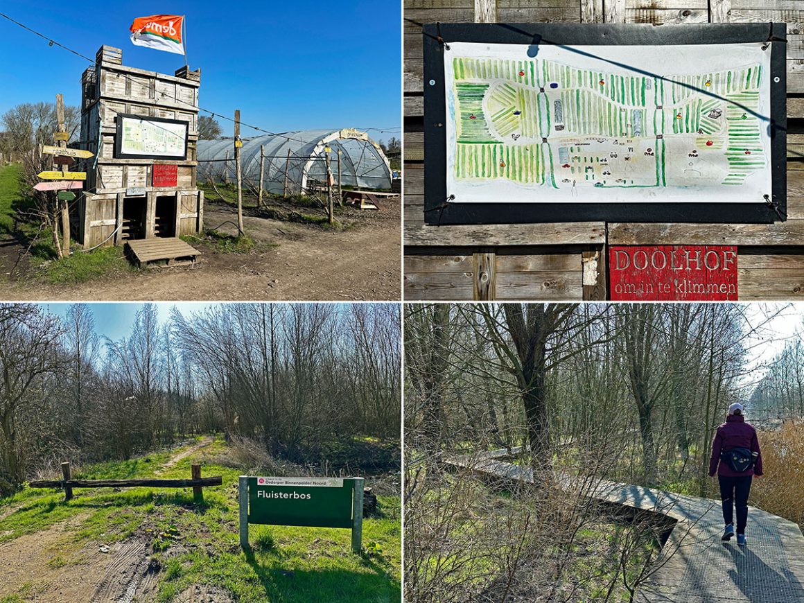 Na in het Tuincafé wat te hebben gedronken en gegeten (ze hebben een uitgebreide (biologische) kaart), wandelen we rustig door naar een bijzonder stukje natuur: het fluisterbos. Kris-kras tussen de bomen en struiken door, deels over een vlonder zagen we het groen om ons heen ontluiken.