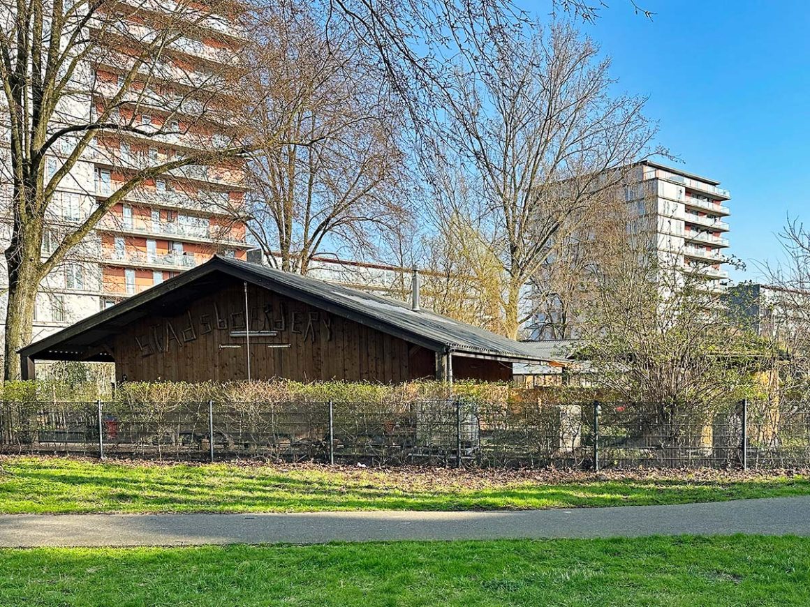 We verlaten het pad aan het einde waar Sportpark De Eendracht begint. Via de Nico Broekhuysenweg lopen we het sportpark voorbij met links van de weg een paar Volkstuincomplexen, nu kortweg Tuinparken genoemd. Na het sportpark naar rechts en de eerste weg naar links brengt ons bij de mooie, strakke grasvelden en grasheuvels. Die nodigen uit tot rennen en vliegen. Niet alleen voor kinderen, maar ook voor honden. Zowel zomers als ’s winters. Samen met de speelvoorzieningen en de glijbaan ‘heuvel af’ is het een eldorado voor de jongsten.