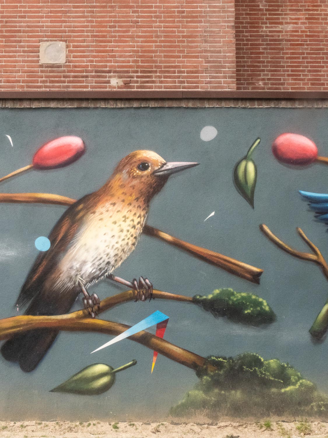 Al fietsend maak je ook kennis met Ramon Dekkers, bijgenaamd ‘the diamond’. Ramon was een professionele kickbokser uit Breda. Als eerbetoon kwam er een muurschildering in de wijk waar hij woonde. Een andere Bredase legende, Abraham de Winter, werd op het Concordiaplein vereeuwigd als zanglijster. De theaterkomiek was namelijk bekend om zijn imitaties, net als deze vogel.