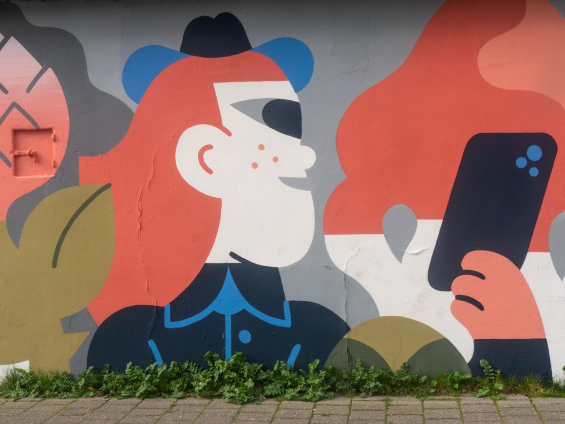 Een troubadour, een boek, een telefoon. Het zijn de historische en hedendaagse vertellers van verhalen. De missie van Blind Walls Gallery wordt verbeeld in een van de muurschilderingen, die je onderweg tegenkomt. Deze Wall is ook een van de ruim 20 kunstwerken, die opgenomen zijn in de audio-tour. Door een QR-code te scannen bij het betreffende kunstwerk, kom je er meer over te weten.