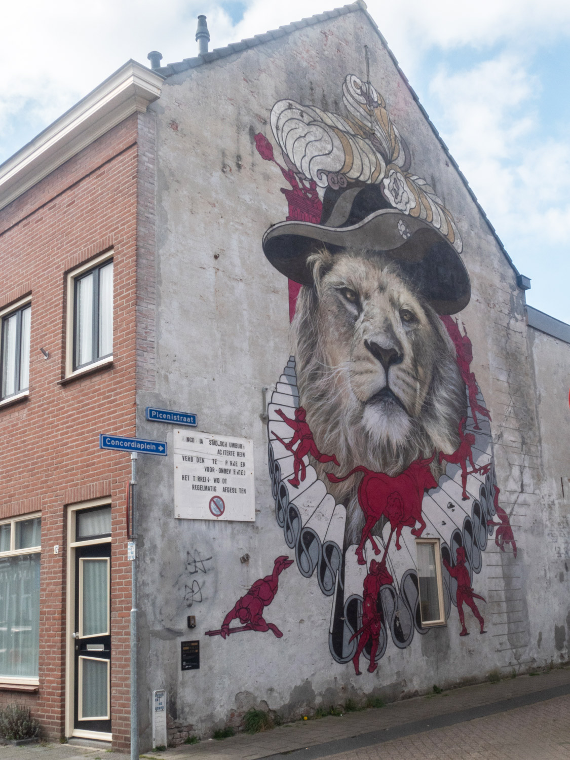 Een eind verderop is een imposante leeuw op de zijgevel van een huis geschilderd. Symbool van de heldenmoed van Godevaert Mantens, burgemeester van Breda tijdens de Tachtigjarige Oorlog.