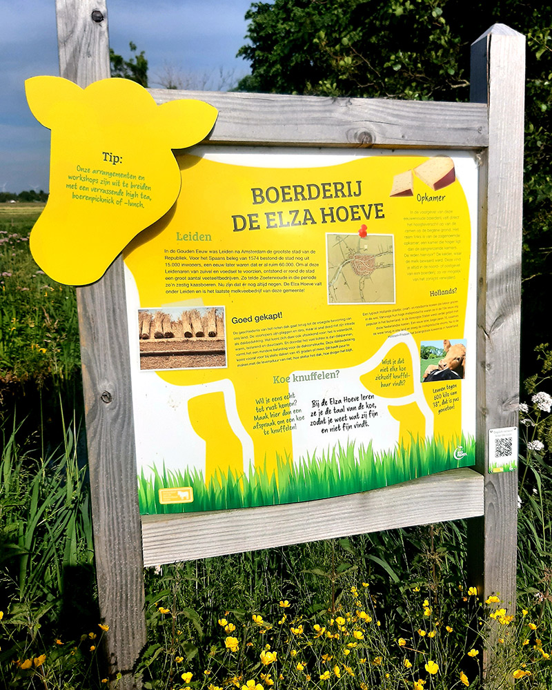 • Elza Hoeve ligt door de omleiding (i.v.m. aanleg snelweg) nu ver van de route af. Hier worden allerlei activiteiten en workshops georganiseerd, zoals koe knuffelen bijvoorbeeld. Dit kan alleen met een reservering.
