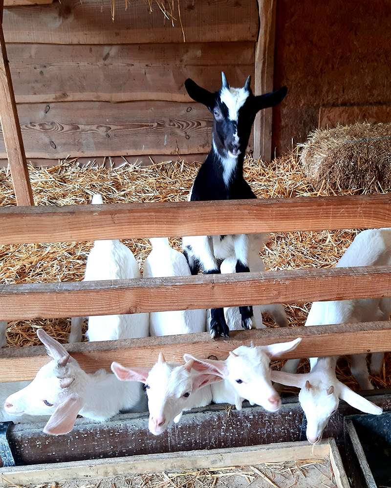 Vervolgens fiets je terug en sla je voor fietsknooppunt 83 rechtsaf voor geitenboerderij ‘t Geertje. Behalve de winkel waar bijzondere producten van dit dier worden verkocht, kun je de boerderij ook bezoeken. Je kunt babygeitjes de fles geven en dit is echt niet alleen leuk voor kinderen … Er is ook een restaurant voor een hapje en drankje.