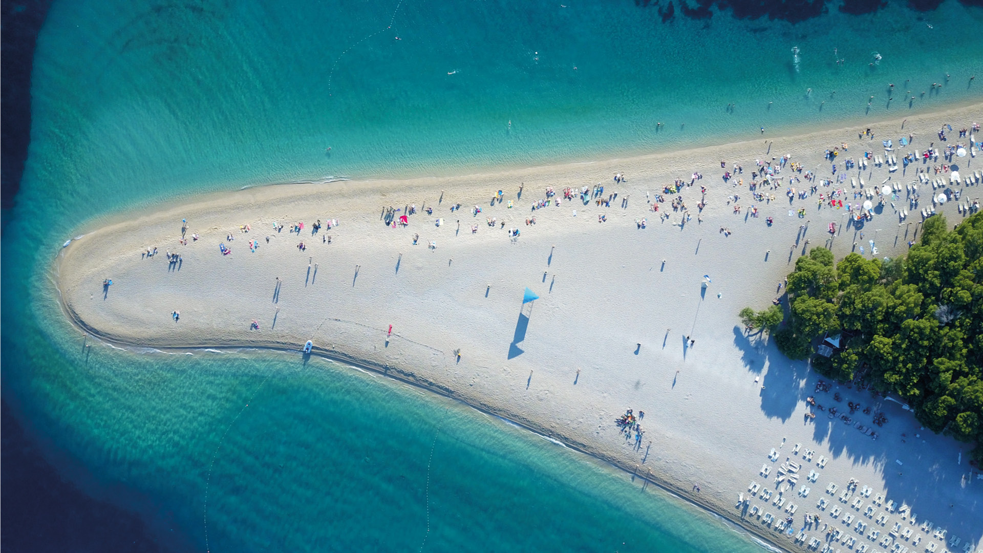 De grootste trekpleister van het eiland is natuurlijk het bijzonder mooie strand van Zlatni Rat. Het strand loopt in een soort traan, met in het midden een stuk bos. Aan beide kanten van het bos vind je een strook strand, waardoor je qua schaduw en zon mooi kan afwisselen. Uiteraard is de bijzondere vorm van het strand eigenlijk pas echt goed te zien vanuit de lucht. Wij namen onze drone mee en dat gaf deze mooie foto’s als eindresultaat. Tja, wat ons betreft het mooiste strand van Kroatië.