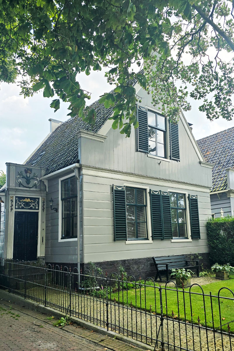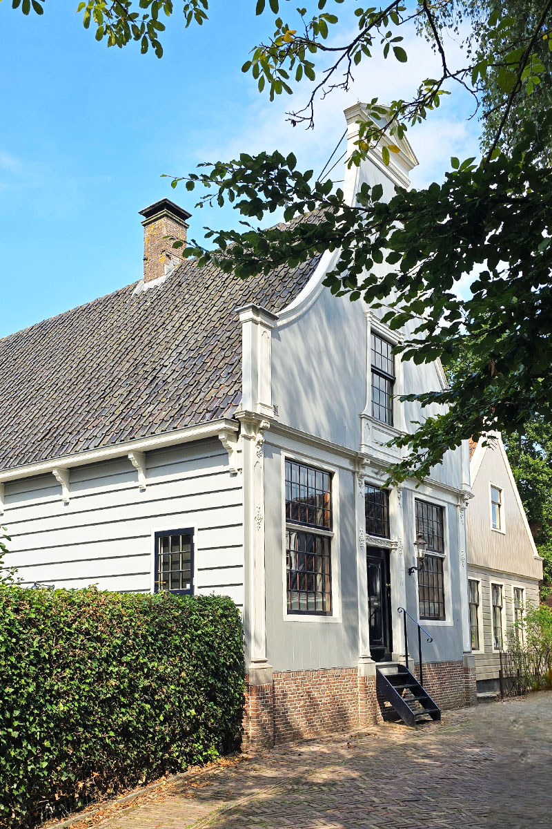 Wanneer je het dorp binnenloopt, vallen direct de houten vrijstaande huizen op. Voornamelijk grijs gekleurd met hier en daar een uitschieter naar (zacht)groen en blauw. De huizen bepalen het authentieke karakter van dit dorp, het voelt net alsof je een ansichtkaart in loopt. Het beschermde dorpsgezicht bestaat uit smalle straatjes, houten huisjes rondom het water, een ophaalbrug en in het middelpunt de grote kerk.