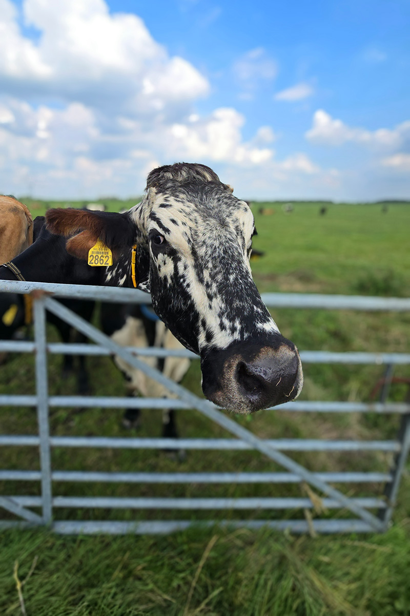 Wij kozen ervoor om ook het dorp even uit te lopen. Lange lanen met boerderijen en een stuk door het weiland. Dit zorgde voor wat avontuur en afwisseling tijdens de route. Onderweg worden we begroet door een grote kudde nieuwsgierige koeien.