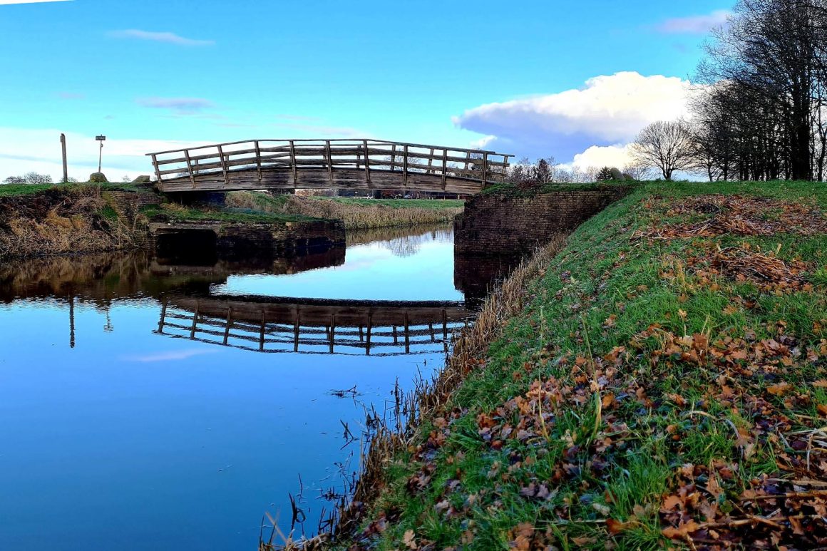 Aan het eind van de route kom je uit bij een oude nog werkende stuw, deze ligt ook aan het ‘Bijvoetpad’. Neem hier even plaats op het bankje en geniet van de rust en het geluid van het kabbelende water. Als je uitgekeken en uitgerust bent, vervolg je aan de andere kant van het kanaal Buinen-Schoonoord je wandeling richting de parkeerplaats. Met aan de linkerkant het water met eenden, zwanen, meerkoetjes en meer …
