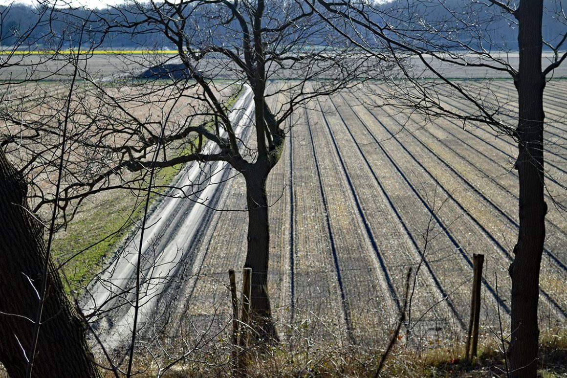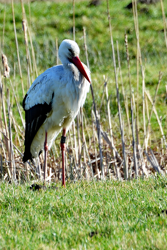 Als je het klaphek bent gepasseerd, zie je Huize Leyduin (1921) al. Net voorbij het stukje weiland waar over het algemeen schapen grazen. Als je mazzel hebt – en ik had dat, ondanks dat mijn wandeling in februari was – zie je de ooievaars al dan niet op hun hoge nest.