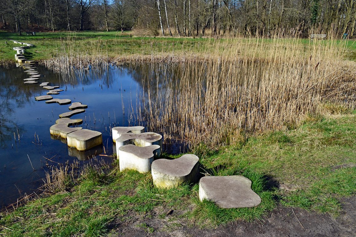 Je wandelt rustig over de kronkelige paden en komt uit bij een iets meer open stuk met een paar vennetjes. Leuk zijn de stapstenen in het water. Een uitdaging voor kinderen. Maar dan wel zomers…