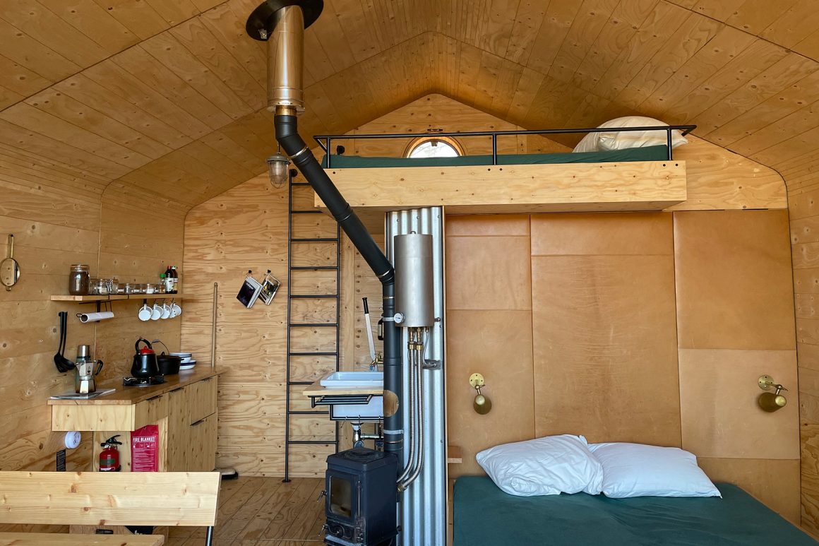 De cabins zijn basic, maar tegelijkertijd ook super luxe en comfortabel. Je moet zelf een slaapzak en handdoeken meenemen, maar er is een heerlijk bed en een koelkastje aanwezig. Leuk weetje: het huisje is gemaakt van diverse lagen karton! Het gefilterde (grond)water moet je zelf met de hand oppompen. De kachel is het middelpunt van het huisje, wat zorgt voor een aangename temperatuur binnen en warm water voor de douche. Zonnepanelen op het dak zorgen voor stroom. Het is heerlijk om hier na een lange wandeling aan te komen, hout te hakken voor de kachel, een kopje thee of koffie te zetten en te genieten van het uitzicht.