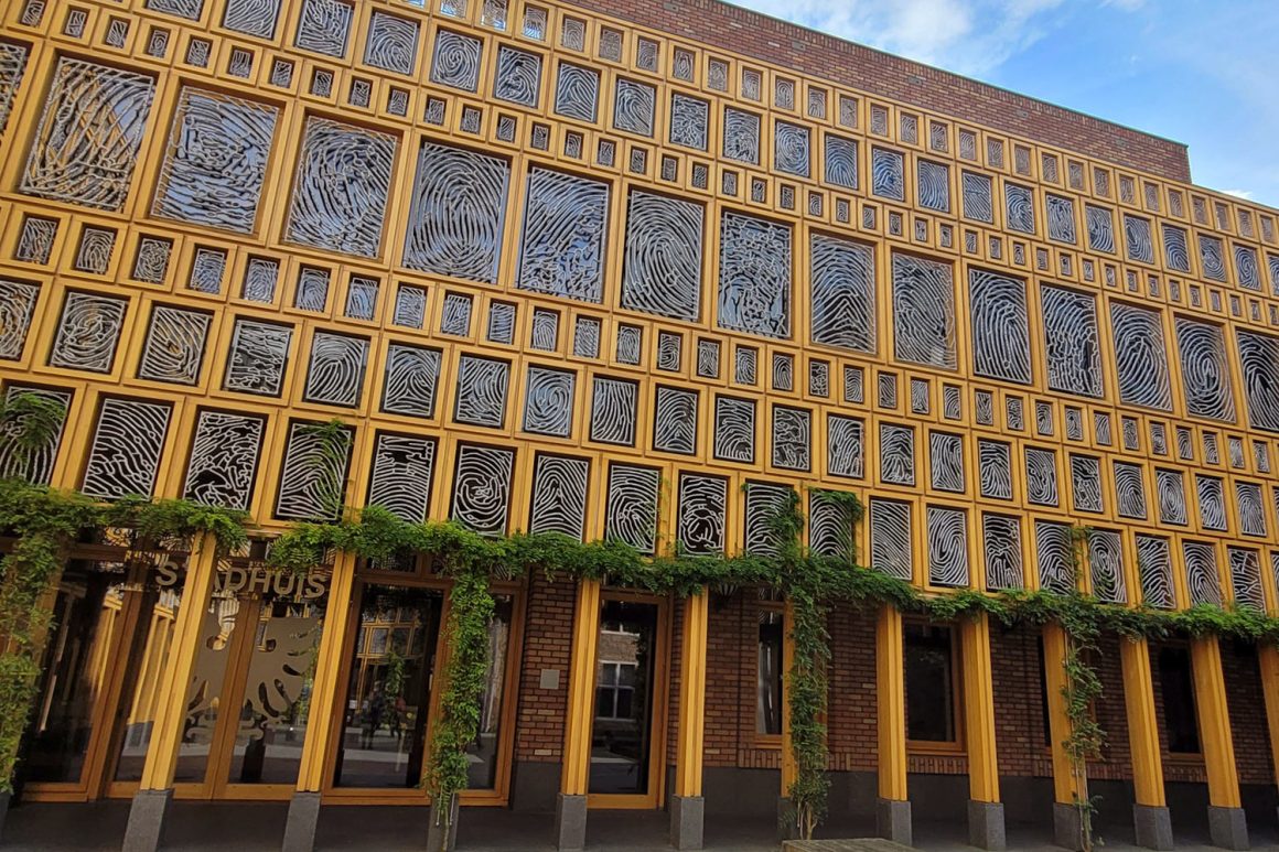 Vanuit het park kom je aan bij de IJssel, waar je met het pontje oversteekt naar het stadscentrum. Vanaf de Welle vervolg je de oranje route via de Nieuwe Markt, langs ’t Arsenaal rechts naar het Grote Kerkhof, waar je links de grote Lebuïnuskerk ziet. Tegenover de kerk is het stadhuis van Deventer gevestigd. De gevel aan de buitenzijde en het binnenplein is een kunstwerk waarin 2664 vingerafdrukken van Deventenaren zijn verwerkt.