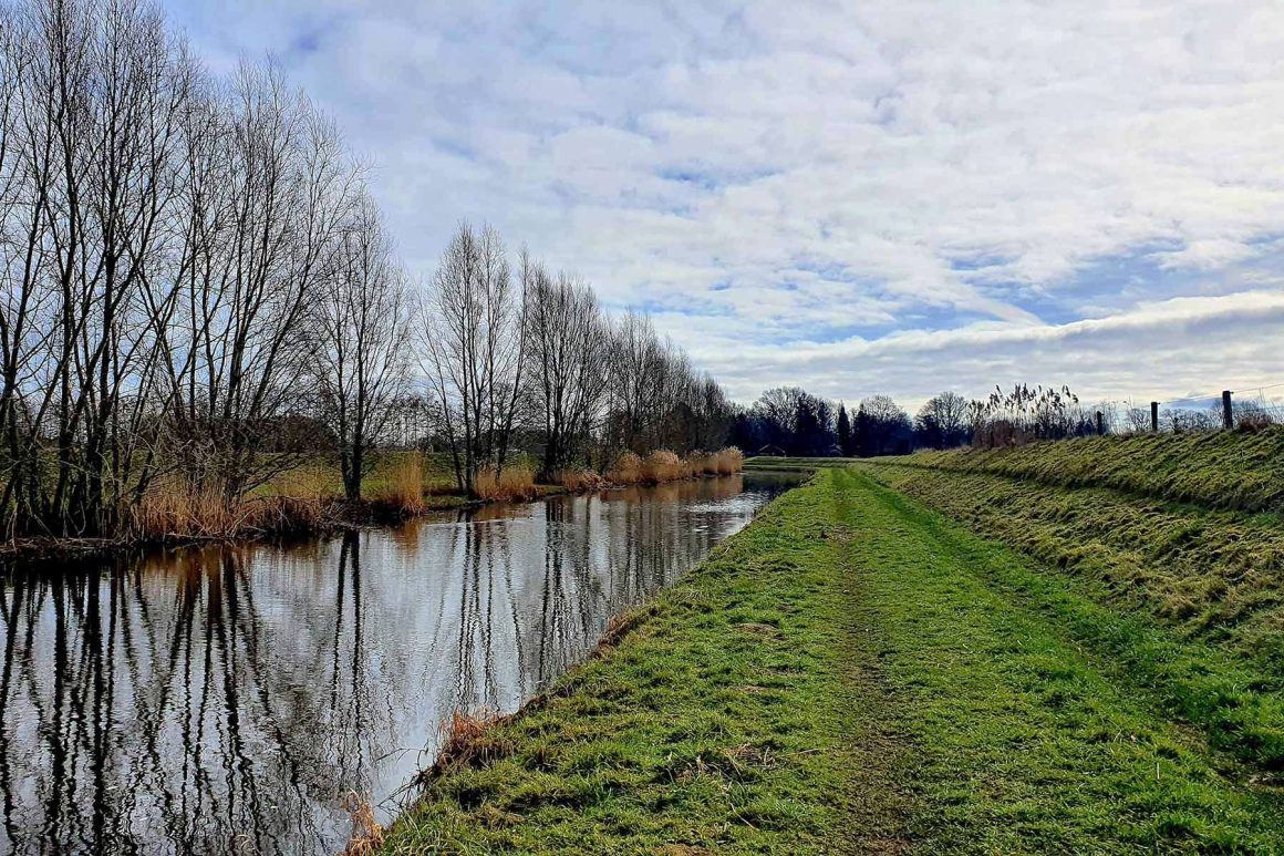 Wij starten onze wandeling bij de begraafplaats in Diepenheim (Odammerweg). Hier kun je je auto gratis parkeren en loop je direct het buitengebied in. In eerste instantie kun je de rood-witte route aanhouden (let op, wij volgen deze niet helemaal). We lopen de Brinkmansdiek op. Hier kom je prachtige oude verbouwde boerderijen tegen, maar ook hoogstandjes van een architect, die perfect passende woningen heeft ontworpen in het landschap. Je loopt door weilanden, over bruggetjes en langs watertjes, die de wolken en zon mooi weerspiegelen. Stop af en toe ook even om achterom te kijken.