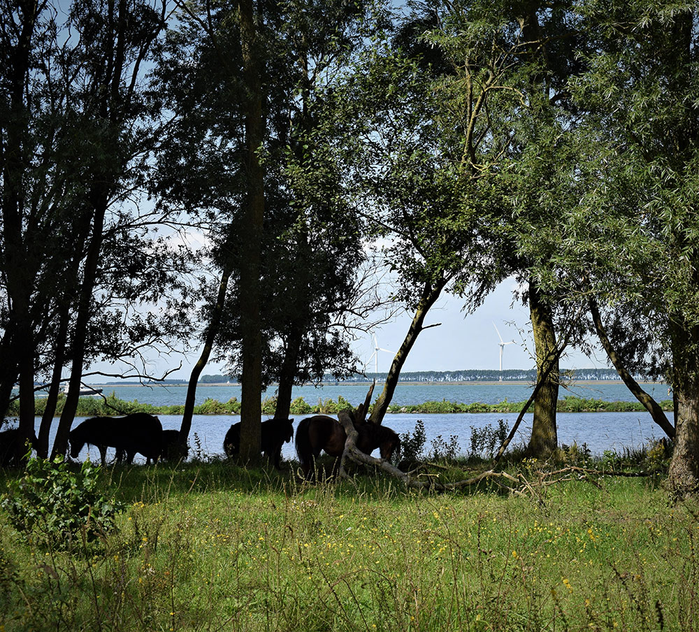 We steken een lage brug over die symbolisch een andere wereld vertegenwoordigt, een wereld waarin zoet en zout met elkaar vermengd zijn geraakt. De Gorzen stonden ooit in verbinding met open zee, maar door de aanleg van de Philipsdam in 1987 kwam daar een einde aan. Het gevolg hiervan is een bijzondere mix van flora en fauna in dit gebied.