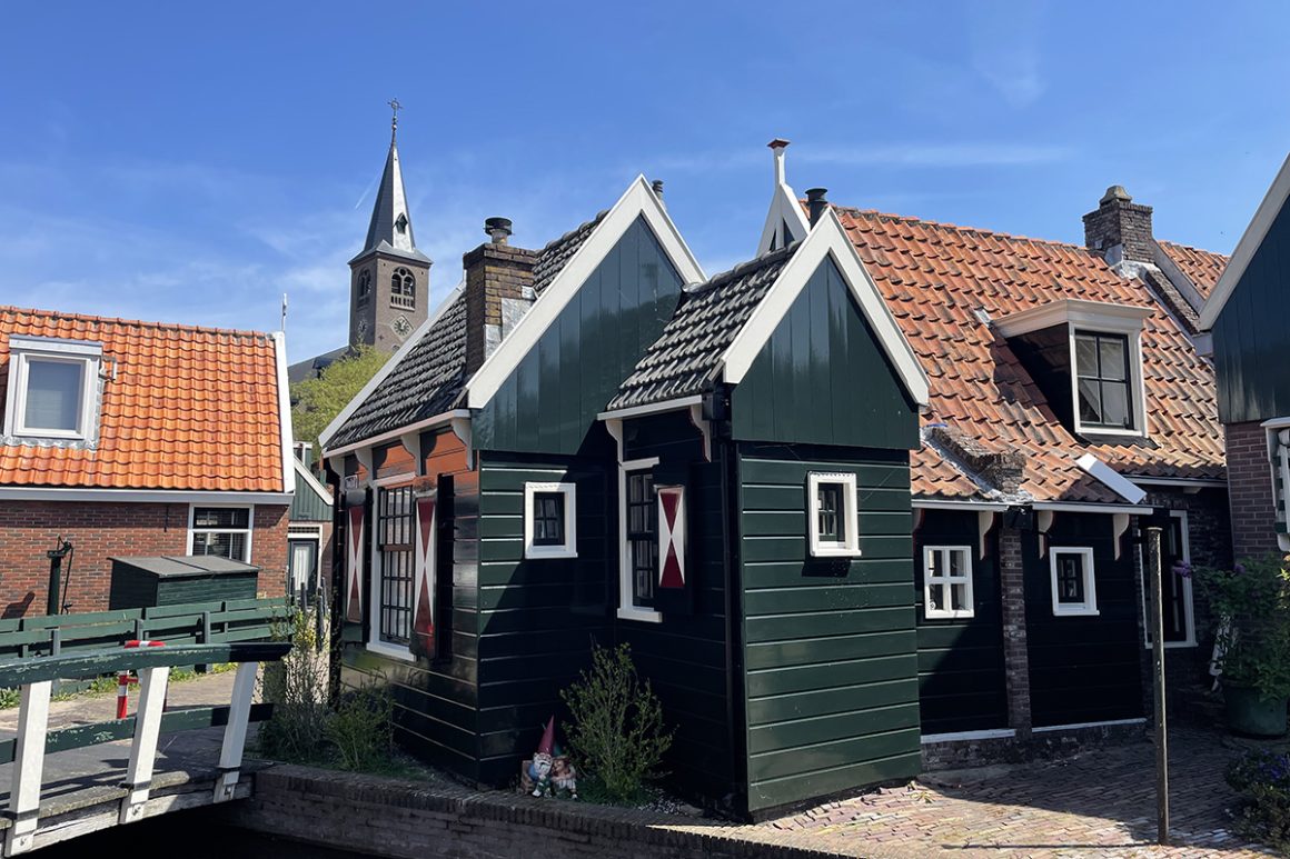 Via de Zeestraat ‘klim’ je naar de Dijk. Die kent iedereen. Ja toch? Toerist in eigen land. Veel horeca, heerlijke paling, een foto in heuse klederdracht, mooie schepen in de haven… Je kunt de Dijk verder aflopen, maar bij het ‘Praathuis’ links naar beneden lopen (Brugstraat) is ook leuk. ‘Volendam achter De Dijk’. Authentieke Volendamse huisjes en bruggetjes. De meeste toeristen kennen het niet. Loop de Meerzijde een stukje heen en weer en ga de Dijk weer op.