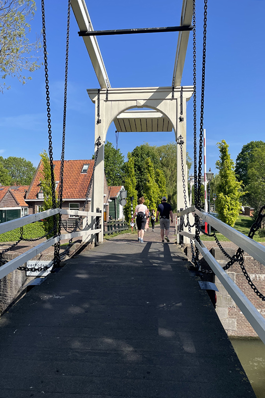 Verder wandelend langs de vaart kom je bij twee authentieke ophaalbruggen. Die ga je over en bent dan aan de rand van de oude kern van Edam. Rechts kun je naar Fort Edam. Naar links via de Voorhaven vervolg je de wandeling langs prachtige oude panden. Klein en lieflijk aan beide zijde van het water.