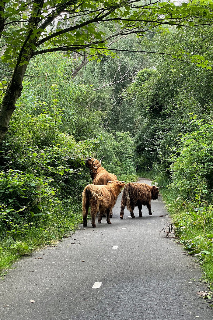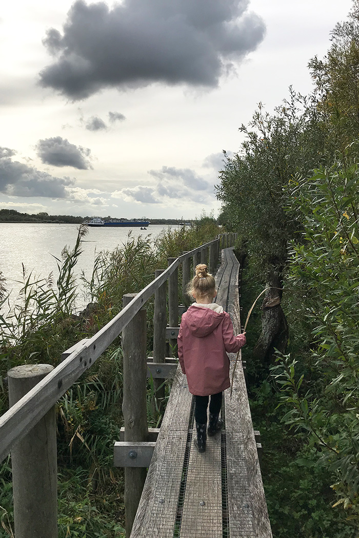 Een gedeelte van de wandeling loopt langs de Oude Maas, de enige nog bestaande getijrivier binnen de delta. Je wandelt over een 900 meter lange vlonder langs het hoge riet. In het jaar 2000 werden er een aantal Schotse Hooglanders losgelaten. Zij maakten er hun leefgebied van. Tijdens je wandeling kun je ze dus tegenkomen.