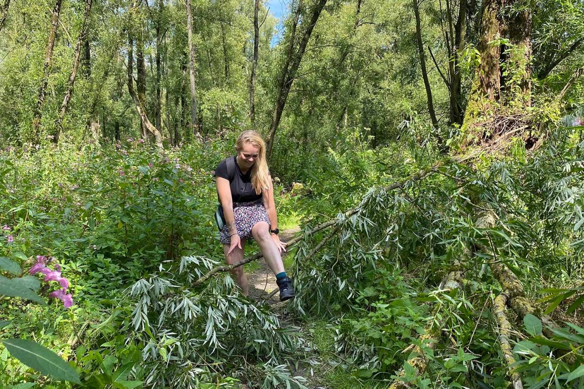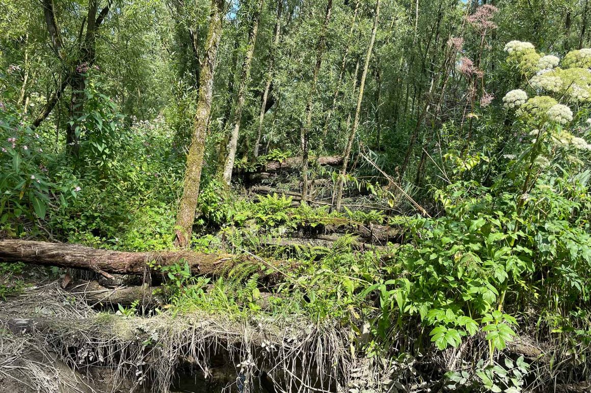 In dit bijzondere gebied waan je je in een woeste wilgenjungle. De paden worden netjes  bijgehouden, maar het overige gedeelte bestaat uit een wildernis van omgevallen bomen,  stronken, woekerplanten en beverburchten.
