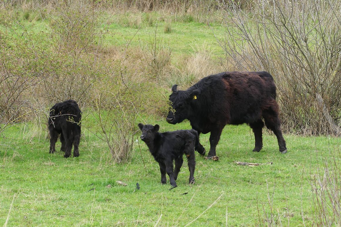 Verder op de wandelroute komen we kuddes met grazers tegen. Dit zijn de Gallowayrunderen met hun jongen en de Konikpaarden.