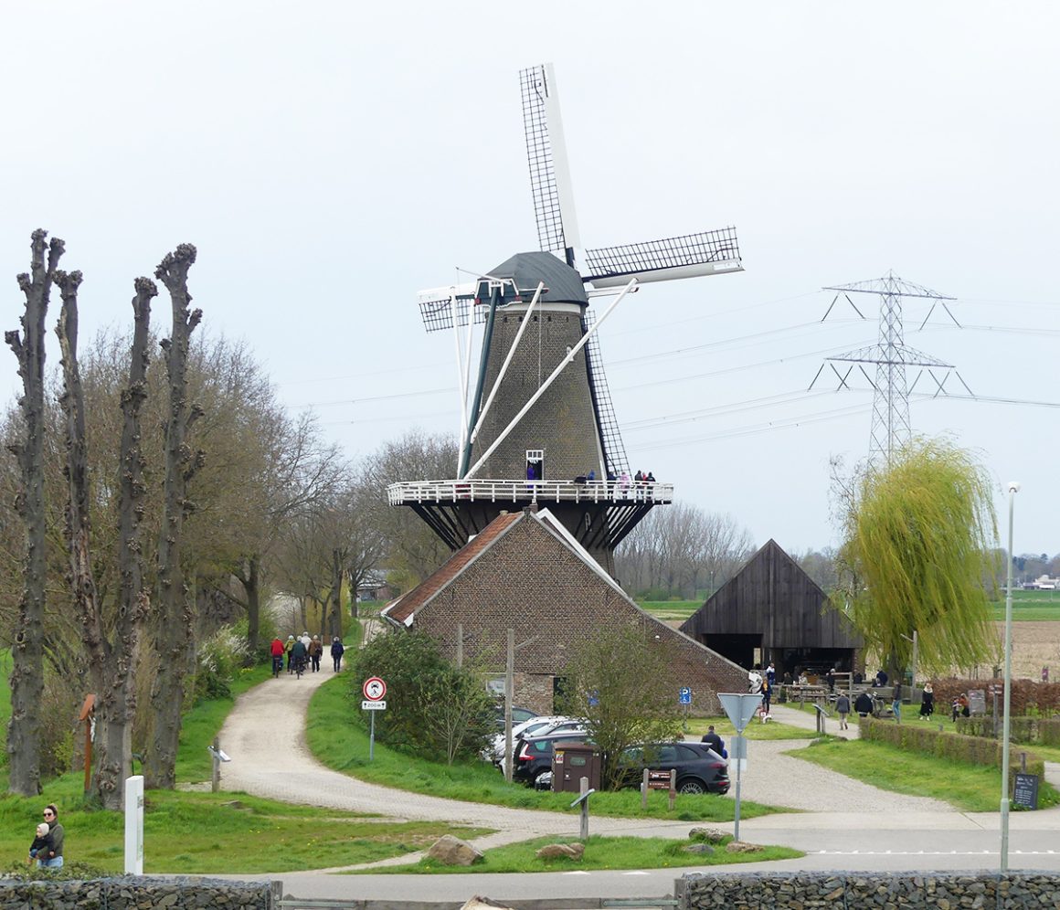 De Hompesche Molen is een perfecte plek voor een lekkere versnapering tijdens je fiets- of wandeltocht. Er is een terras en een kinderspeeltuin van Natuurmonumenten. Wij gaan eraan voorbij omdat we net in Stevensweert al koffie met vlaai genuttigd hebben. Dat kun je in Limburg niet overslaan. Tegenover de Hompesche molen is een uitzichtpunt waar je mooi over het natuurgebied kunt kijken.