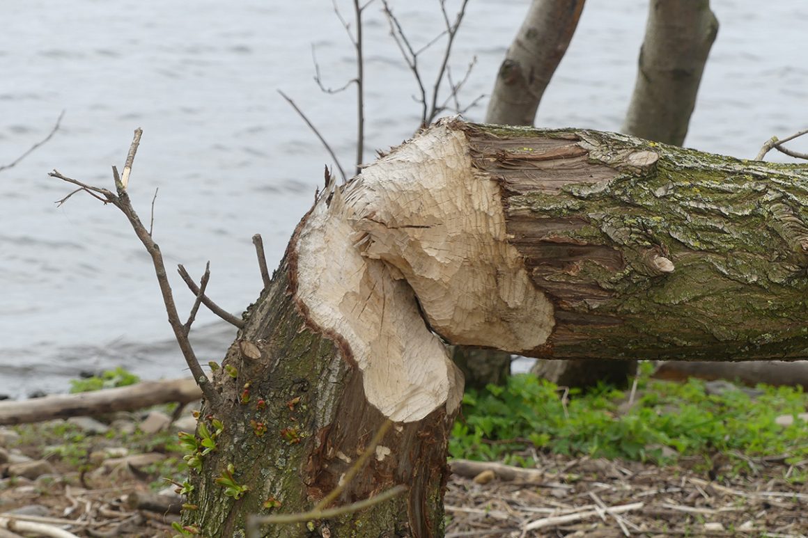 We zien vele sporen van bevers. Overal liggen verse afgeknaagde bomen en takjes. Ze voelen zich hier vast thuis.