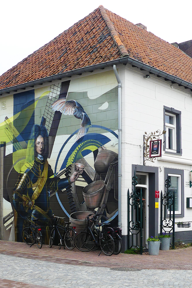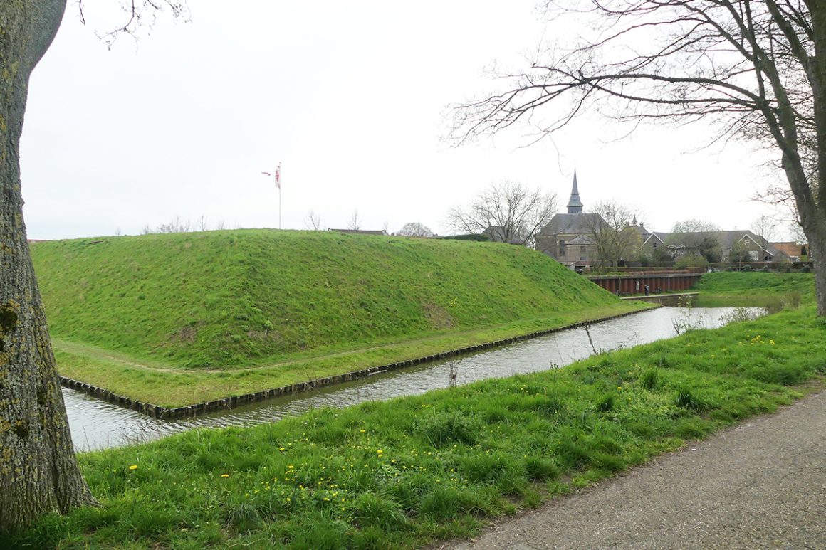 Na een lekkere Limburgse vlaai pakken we de wandelroute weer op. Via een tunneltje kun je de gracht oversteken en zie je hoe mooi de oude vesting is gereconstrueerd.