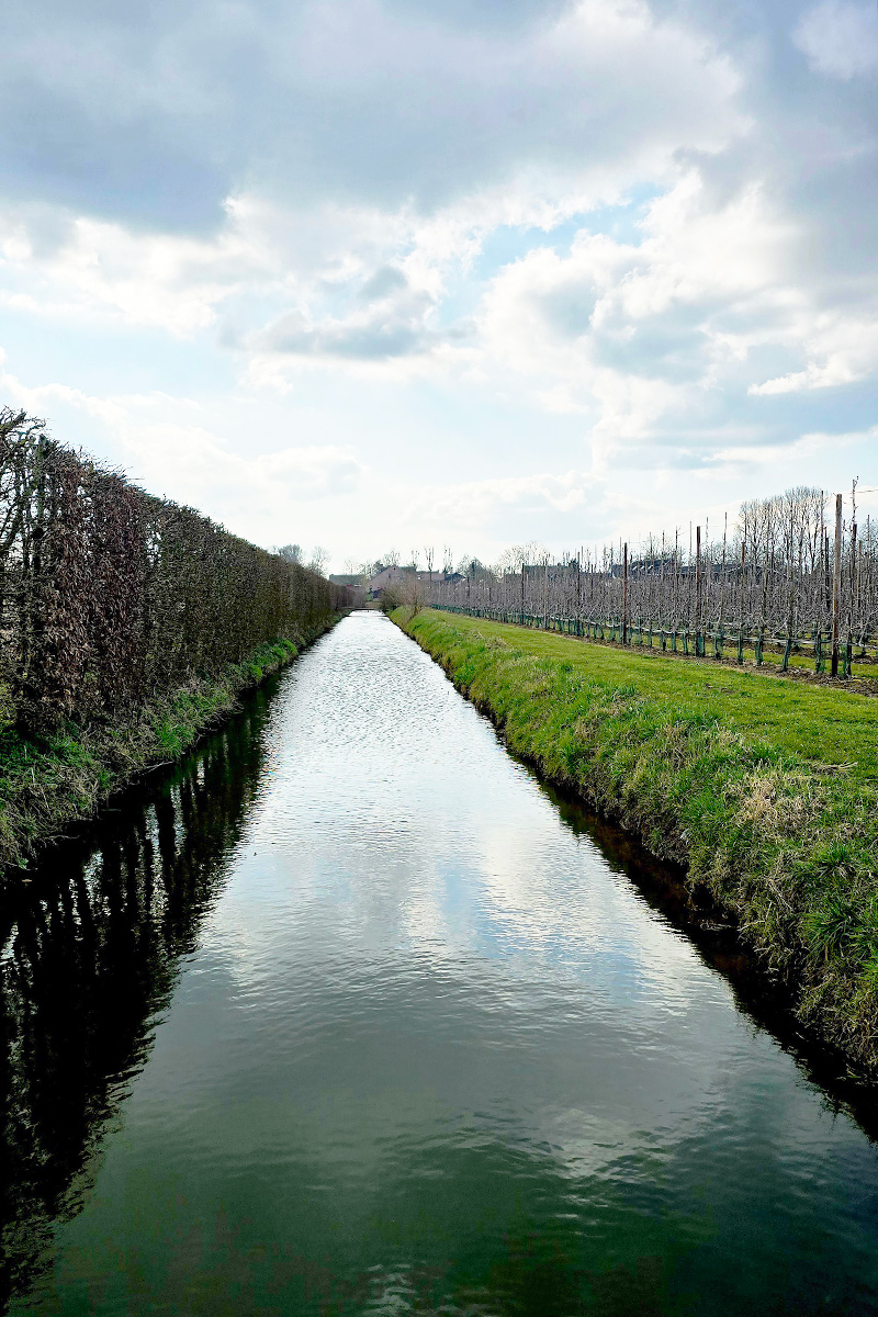 Tijdens dit klompenpad loop je ook een stukje door een boomgaard, waar heerlijke appels hangen. We krijgen ook gezelschap van een eend en een kat, altijd een gezellige boel tijdens zo’n wandeling op een klompenpad.