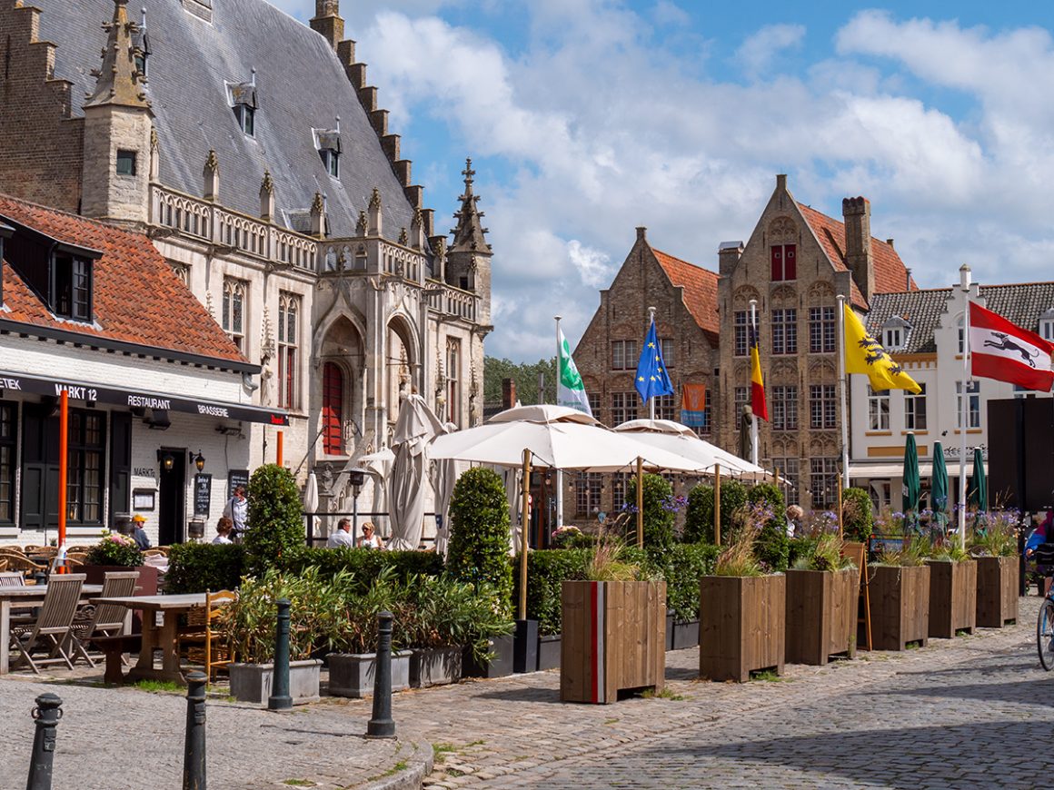 In Damme is het gezellig zitten op het marktplein, bijvoorbeeld bij De Lamme Goedzak. Vergeet ook zeker niet om in Brugge een heerlijke wafel te bestellen, mét aardbeien en slagroom, want dat heb je verdiend na zo’n fietsrit.