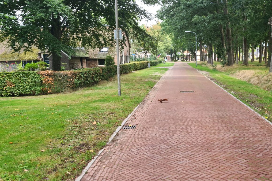 We starten onze route in Zeijen en dat is meteen zo’n verborgen parel. Een slaperig dorpje met een dubbele lommerrijke brink vol bomen, omzoomd met boerderijen. Aan één kant van de brink staat het dorpscafé waar nog niets te doen is, de dorpslui zitten nog bij de plaatselijke voetbalclub of in de kerk. We fietsen via de brink Zeijen uit, vlak voor ons steekt een eekhoorntje pijlsnel de weg over.