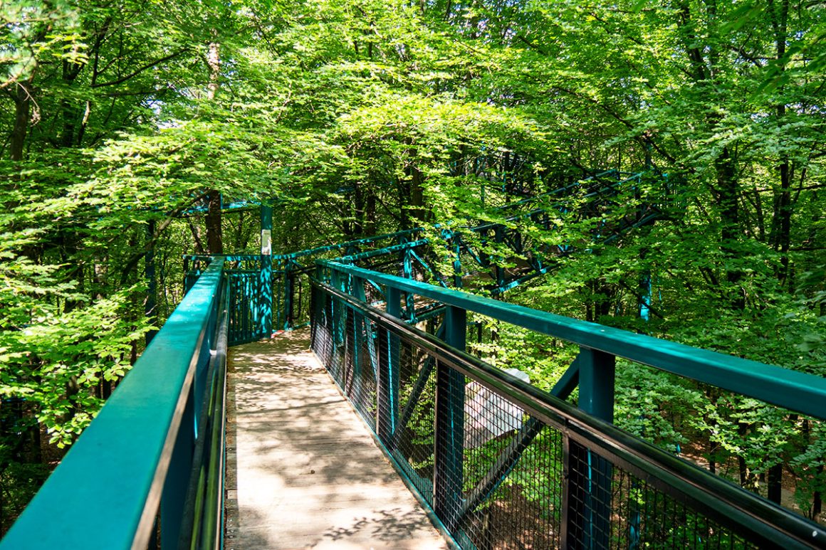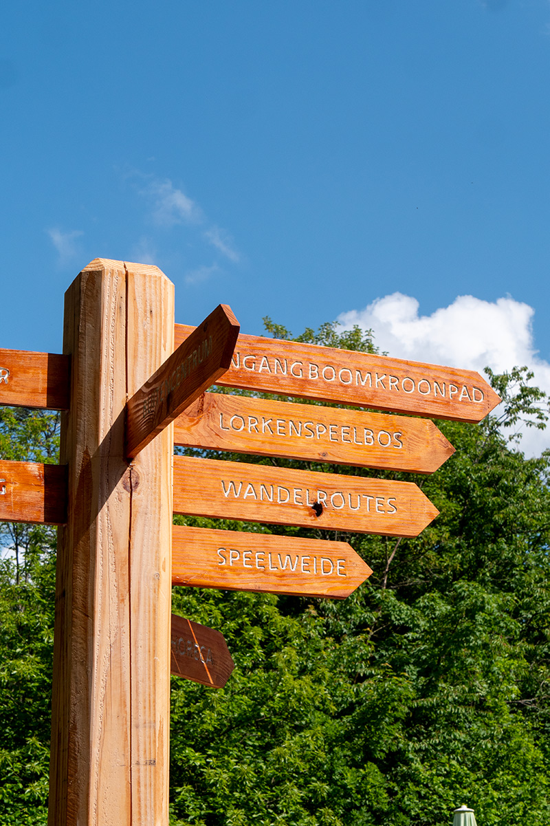 Na drie kilometer vanaf het beginpunt vind je, nabij knooppunt 86, Buitencentrum Boomkroonpad. Wanneer je bij het knooppunt aankomt, fiets je eerst nog even een stukje door naar rechts en je komt vanzelf bij het buitencentrum. Hier nodigt het speelbos Lorken je uit om in bomen te klauteren, hutten te bouwen, lekker van de glijbaan te gaan of een klimparcours te volgen vlak boven de grond. Extra indrukwekkend is het Boomkroonpad, ook voor volwassenen! Dit wandelpad van 125 meter brengt je hoog langs de toppen van de bomen. Een waanzinnige manier om een bos te ervaren.