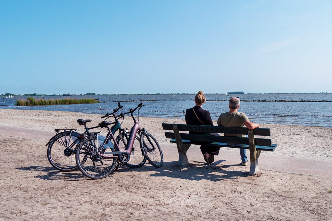 Na een wandeling door Sloten en een gebakje op het terras, pakken we de route weer verder op. Het fietspad gaat langs het Slotermeer en nadat je het plaatsje Balk bent gepasseerd, fiets je recht op het meer af. Een heerlijke plek voor een zomers drankje is paviljoen Badmeester Keimpe, gelegen aan een klein strandje.