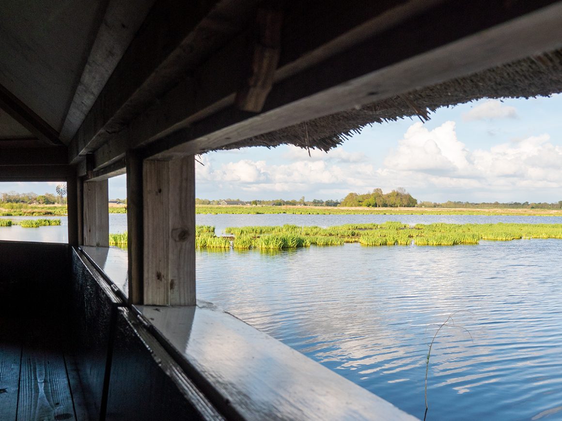Een heerlijk gebied om per fiets te ontdekken, waarbij je open water van sloten, vaarten, petgaten, meren en plassen passeert. Met een grote hoeveelheid vis is het ook niet verwonderlijk dat talloze vogels dit gebied als hun thuis zien. Denk aan de fuut, blauwe reiger, purperreiger en zelfs de roerdomp. Ook grote groepen eenden zie je geregeld voorbij dobberen. Tussen de knooppunten 14 en 16 fiets je langs uitkijktoren Romsicht. Een mooi plekje om even af te stappen.