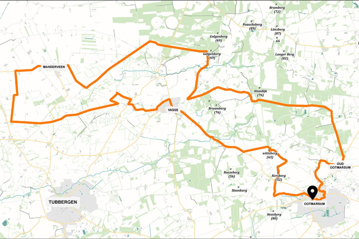 Knooppunten: 32 - 26 - 25 - 93 - 13 - 24 - 27 - 31 - 33 - 33 - 29 - 69 - 35 - 30 - 34 - 93 - 28 - 32 Lengte: 33 kilometer Normale fiets: 2 uur en 2 minuten Elektrische fiets: 1 uur en 39 minuten Beginpunt & parkeren: Een goed plek om deze route te starten, is de Molen van Bels. Deze watermolen vind je aan de Bergweg 9 in Mander. Knooppunt 32 vind je een klein stukje richting het zuiden waar de Bergweg en Oosteriksweg elkaar kruisen. Je kunt hier na afloop nog wat drinken of een pannenkoek eten.
