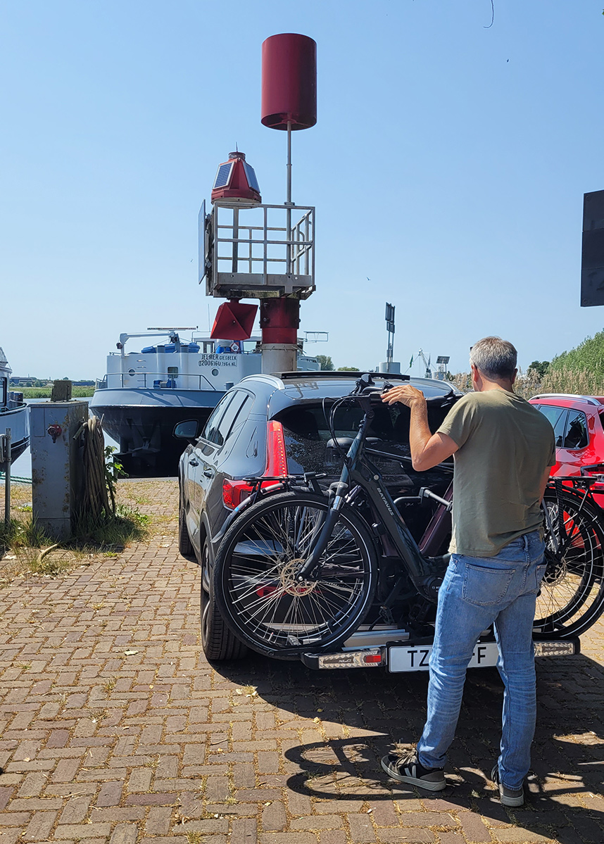 We parkeren onze auto aan de Havendijk in Zwartsluis, op een TOP-locatie. Een TOP staat voor Toeristisch OverstapPunt en is een startpunt waar je de auto makkelijk kunt parkeren om vervolgens te wandelen, varen of in ons geval te fietsen. Je hebt op dit soort plekken ook vaak een informatiepaneel met bewegwijzerde routes en op sommige plekken ook oplaadpunten voor e-bikes, ideaal!