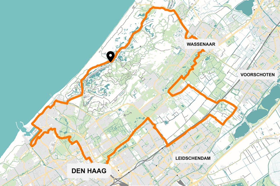 Knooppunten: 40 - 41 - 43 - 47 - 61 - 51 - 52 - 55 - 84 - 88 - 86 - 93 - 82 - 83 - 11 - 58 - 33 - 32 - 30 - 29 - 37 - 24 - 39 - 40 Lengte: 43 kilometer Normale fiets: 2 uur en 39 minuten Elektrische fiets: 2 uur en 9 minuten Beginpunt & parkeren: Een goede plek om deze route te beginnen is de parkeerplaats bij Boerderij Meyendel aan de Meijendelseweg 36 in Wassenaar. Volg het fietspad ten noorden van de boerderij richting het noorden en je komt vanzelf bij knooppunt 40. Je kunt hier na de fietstocht buiten op het terras een pannenkoek te eten. Met de trein? Start dan de route bij knooppunt 30 pal tegenover station Den Haag Centraal.