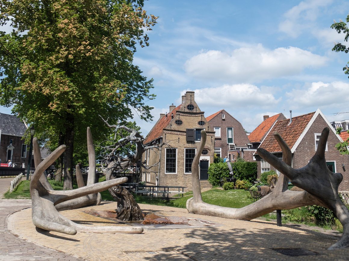 Ook hier kun je een van de ‘11 fountains’ afvinken. ‘Flora & Fauna’ symboliseert het stadswapen, waar een hert en hinde in voorkomen. In het vernieuwde Hindelooper museum kom je alles te weten over de geschiedenis van dit handelsstadje. Natuurlijk ontbreken de Hinderlooper klederdracht en de unieke volksschilderkunst met haar stippen, krullen en bloemen hier niet. Uitrusten kun je op het leugenbankje, op de plek waar vroeger de visafslag was.