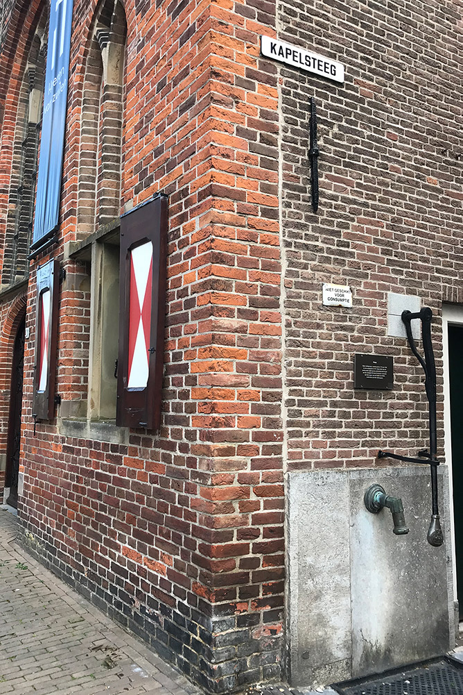Let ook eens op de oude openbare waterpompen in de stad. Tot de aanleg van de waterleiding in  1886 konden de inwoners alleen aan water komen uit havens of grachten, door regenwater in  tonnen te bewaren en door water uit een wel in de bodem te pompen.
