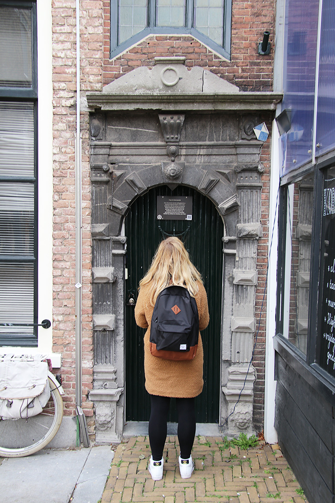Verkleed als metselaar kwam Hugo de Groot door dit poortje weer naar buiten en vluchtte via het  veer over de Merwede naar Antwerpen. Sindsdien wordt dit het Hugo de Groot poortje genoemd.