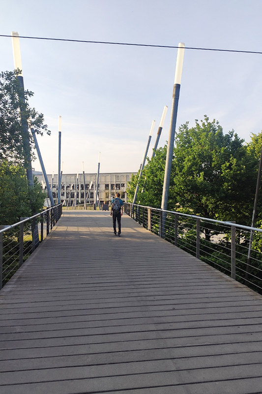 En zo fiets je dan de stad Gronau in! Het meest verbaas ik me over de oude fabrieksterreinen en de nieuwe invulling ervan. Het Popmuseum is prachtig om te bezoeken of pak gezellig midden in de stad Gronau een terrasje. Bijvoorbeeld onderaan de toren.