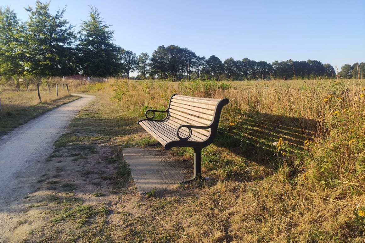 Even later zie ik, aardig dichtbij, een aantal roodbonte runderen relaxed grazen in de heide. De kalveren natuurlijk dicht bij moeders in de buurt. Omdat het me onduidelijk is of er tijdens de fietsroute nog een perfecte pauzeplek komt, besluit ik om te pauzeren. Na de stop volgen er nog vele bankjes in alle vormen en maten op de leukste plekjes. Maar neem vooral wat mee, want onderweg kom je weinig plekjes tegen waar je iets kunt kopen.
