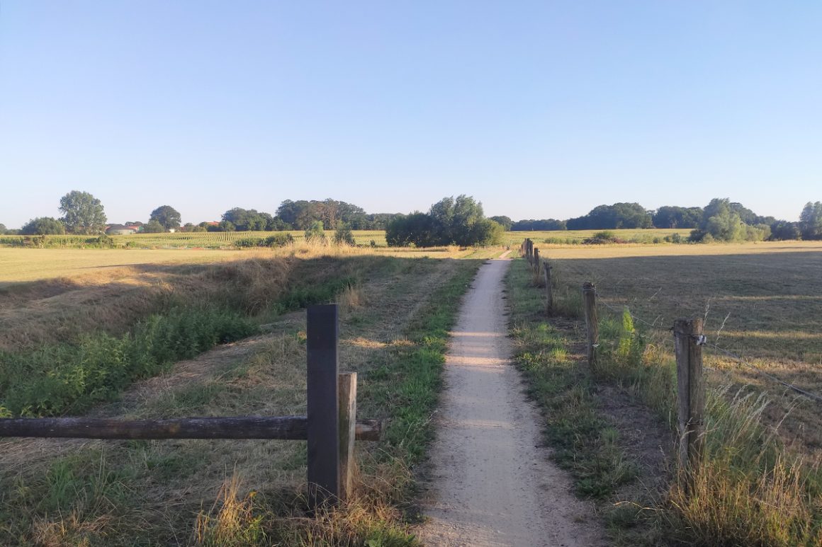 ‘Zwei ist hier hin’, ja want in Duitsland is het fietsen toch wel iets moeilijker. De fietsbordjes zijn kleiner, soms zijn het witte bordjes met een rood fietsje en een pijltje en soms een heel ieniemienie pijltje. Maar gelukkig, de trekkerboer wijst me de juiste weg. Terwijl ik aangaf dat er onderweg niet zoveel rustpunten te vinden zijn, kom ik op een fantastisch mooi plekje. Oldenkotte, in Vreden, heeft een ontzettend leuk kerkje met een aantal cafés. En voordat ik het in de gaten heb, ben ik weer in Nederland.