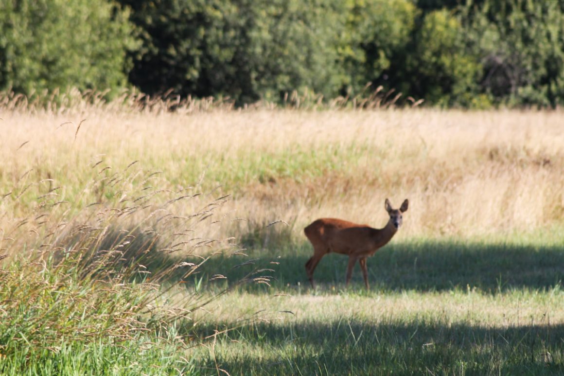 In het begin ben ik direct al de weg kwijt want ik fiets langs een drukke weg, maar gelukkig kom ik weer aardig snel de paaltjes van de knooppunten tegen. Ik weet niet wie het meest verrast was, het ree of ik, we keken elkaar verbaasd aan. Remmen, fototoestel pakken… want dat is natuurlijk wel de kunst, om op tijd te stoppen en te genieten van het fantastische uitzicht.