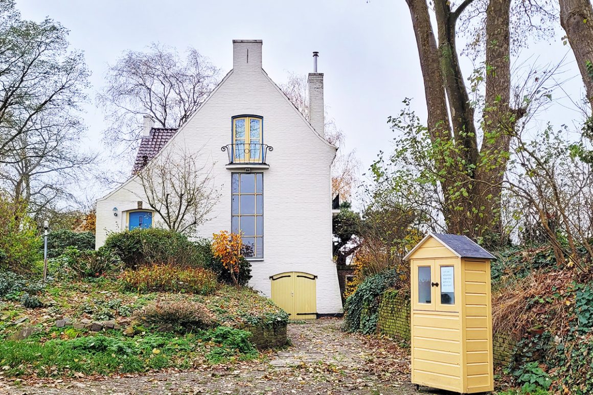 Aan het Zandvoortspad tref je aan de rand van een achtertuin een mooi bankje met een boekenkast. Een bordje bij het bankje nodigt uit om even te gaan zitten: goat zitt’n en rust oe!