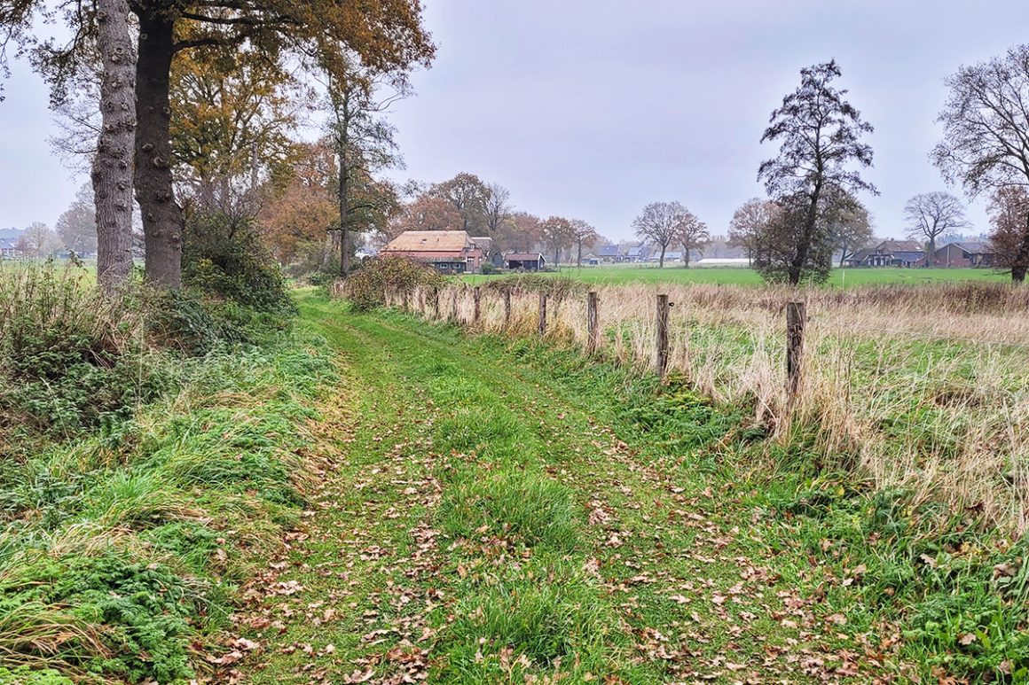 Op het volgende kruispunt sla je linksaf, je wandelt een klein stukje over asfalt en gaat bij het eerstvolgende pad rechtsaf, een mooie grasweg die verderop achter een woonhuis langs weer uitkomt aan de Schreursweg. Dit is de buurtschap Look. Je steekt hier de kruising over en wandelt verder via de Broensweg en ventweg richting de N350, Rijssenseweg. Bij de rotonde steek je over en vervolgt de ventweg, waarna je links langs/onder een houten hek doorloopt een klein parkachtig stukje groen in tussen de Drostenweg (alleen auto’s) en de Dikkesteenweg (fietspad). Je slingert hier door en komt aan het eind uit tegenover een spoorwegovergang. Deze steek je over en wandelt gelijk linksaf, Groenewegje.