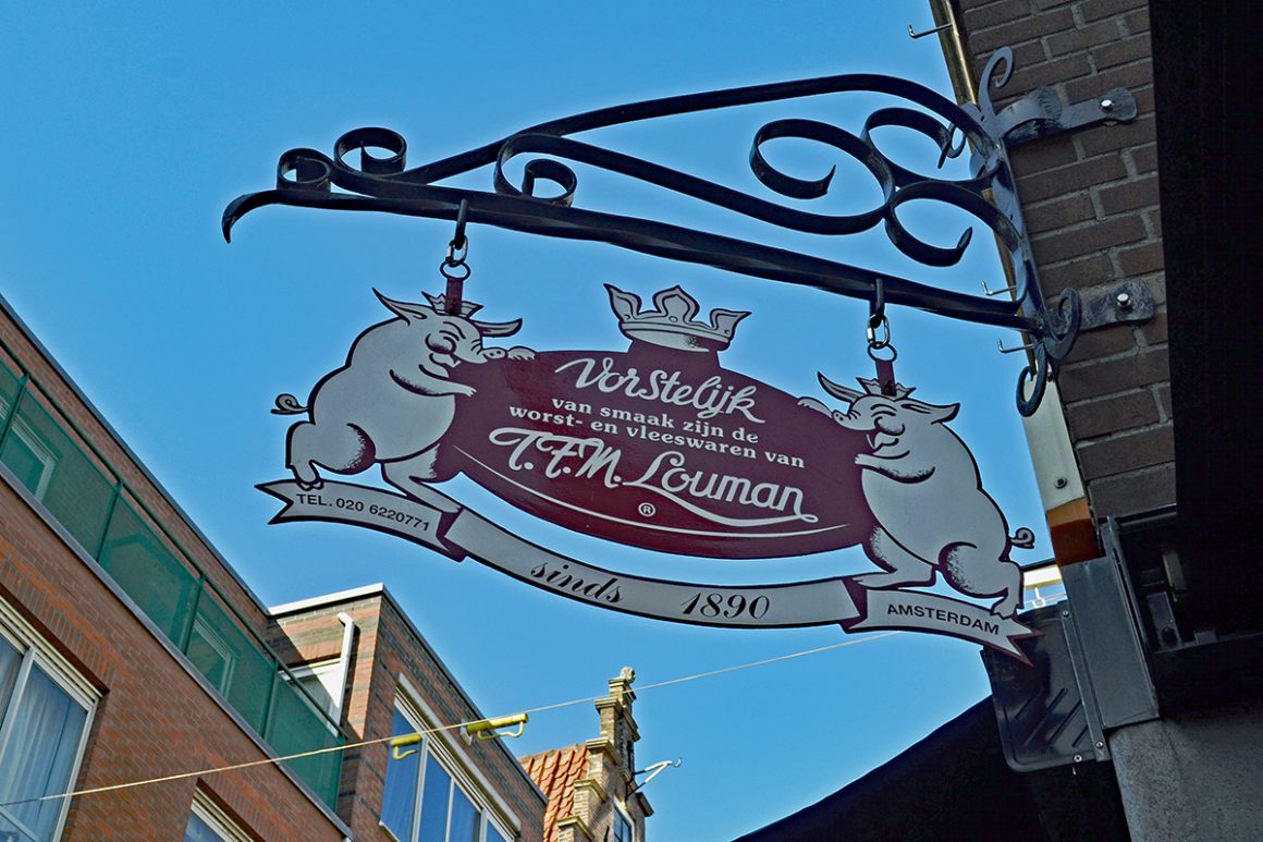 De Lindengracht steek je over richting de Goudsbloemstraat en gaat naar rechts. Op de eerstvolgende hoek (aan de evenzijde) zit de Ambachtelijke Slagerij & Worstenmakerij Louman, anno 1890. Daar moet je écht naar binnen om een ossenworst of leverworst te kopen. Ik kocht laatst gerookte ossenworst volgens een recept uit 1746. Hmmm… Doen! Proeven mag.