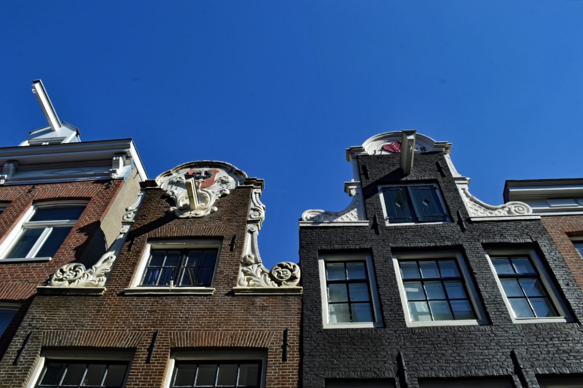 Ik ben de eerste straat aan de even zijde ingegaan, loop midden op de weg en kijk links, rechts en omhoog. Soms even naar achteren. Dat is genieten. Leuke oude en meestal gerenoveerde huizen met mooie gevels en gevelstenen. Je ziet dat veel winkelpandjes nu woningen zijn.