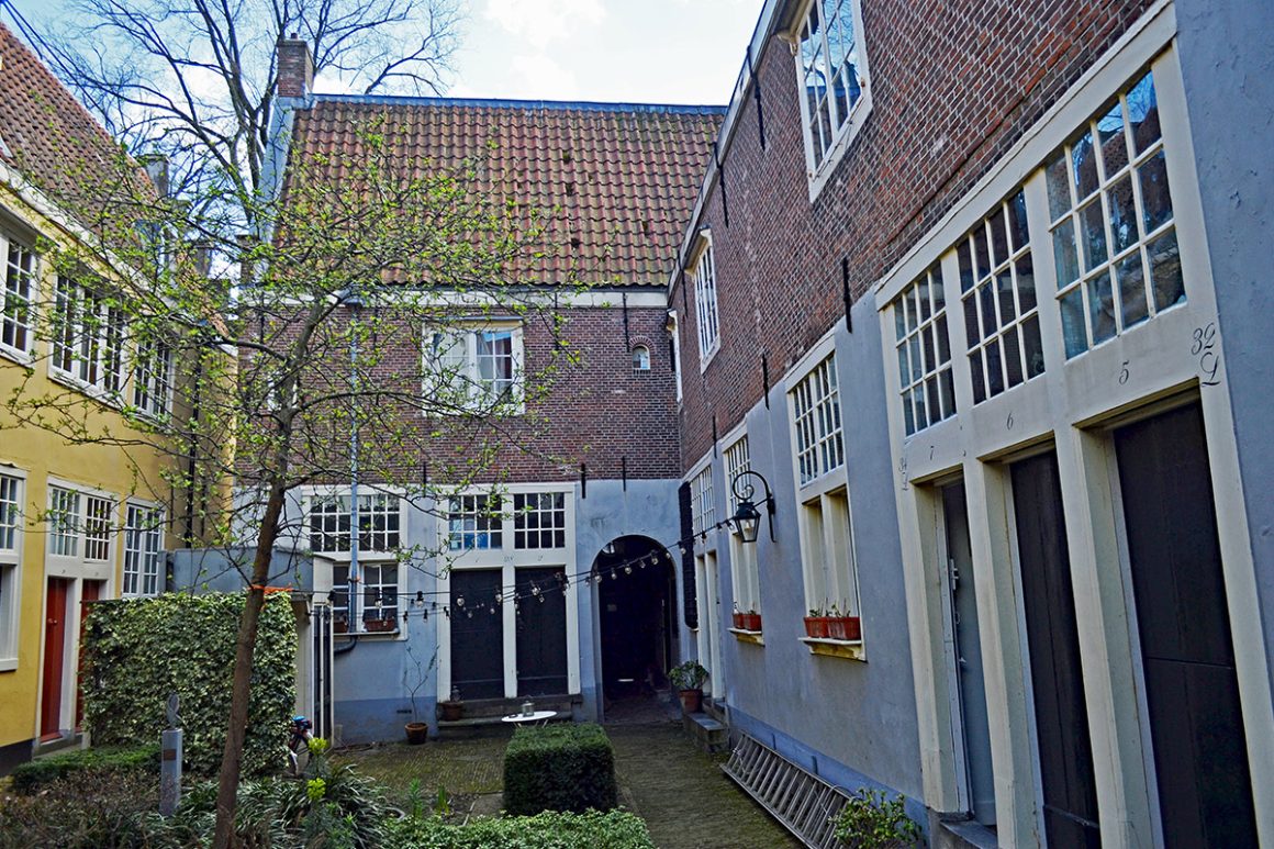 Je neemt de Karthuizerstraat, waar vroeger het door brand verwoeste Kartuizerklooster (1394-1572) stond. In 1650 werd hier gebouwd aan het Huys-zitten-Weduwen-hofe, later Karthuizerhof genoemd. Alleen voor weduwen dus. Nu worden de woningen verhuurd door een corporatie. Naar binnen gaan is een must!