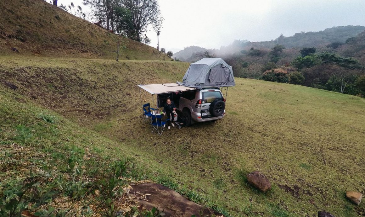 Kamperen in Costa Rica ligt misschien niet zo voor de hand en veel andere kampeerders kom je hier dan ook niet tegen. Toch hebben wij, Tim en Eveline, gekozen voor deze manier van reizen door Costa Rica. Een tentje zagen we niet echt zitten, want het blijft toch een land waar je hier en daar een slang of zelfs een krokodil kunt tegenkomen. Daarnaast ben je ook redelijk kwetsbaar. Na wat research kwamen we uit bij Nomad America, een organisatie waar je verschillende 4×4 wagens met daktent en kampeerspullen kunt boeken. Dit leek ons wel wat! Slapen op het strand, de vrijheid om te gaan en te staan waar we wilden en de mogelijkheid om zoveel mogelijk offroad te gaan door de 4WD (vierwielaandrijving).