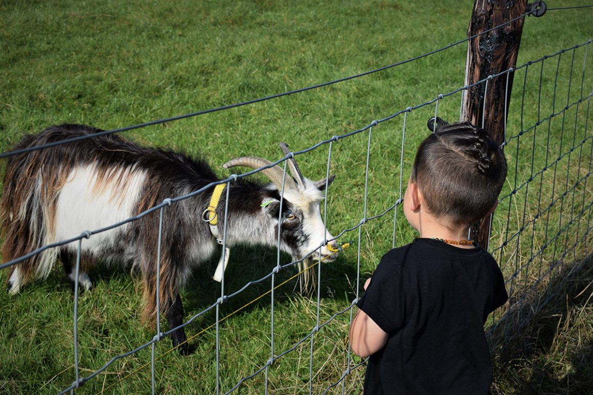Het laatste stuk van de wandeling brengt je door het boerenland. Via weilanden over hekjes klimmend, om uiteindelijk bij een trekpontje uit te komen. Dit kun je beschouwen als het avontuurlijk stuk voor de kinderen op deze route. Tussendoor even gedag zeggen tegen een geit, om dan uiteindelijk uit te komen bij Landwinkel Nieuw Slagmaat. Hier kun je een hapje eten en drinken, prachtige streekproducten kopen en de kinderen kunnen hier op een grote rode tractor klimmen en rondstruinen.