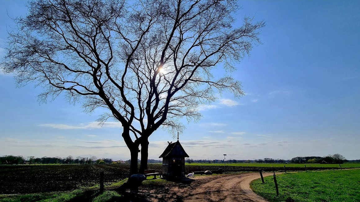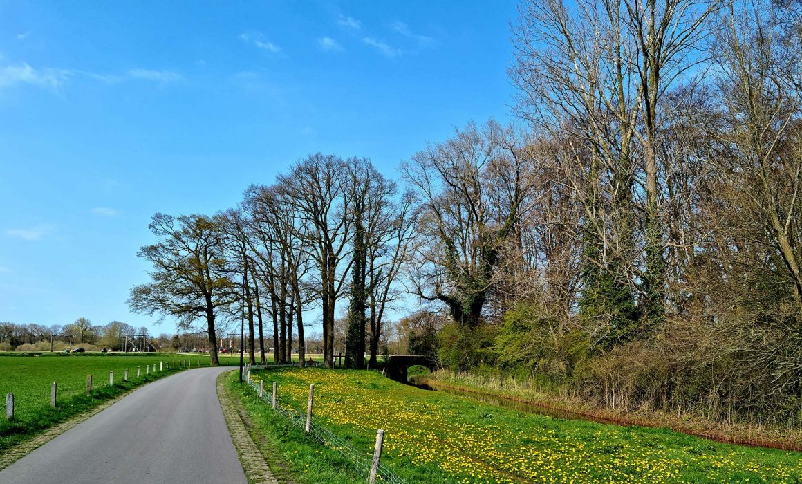 Misschien herken je hier even een stukje van de route. We zien rechts weer het Carmelitessenklooster liggen, maar we slaan linksaf en gaan het spoor over. Met een beetje mazzel loop je hier in de periode dat de koolzaadvelden uitbundig geel staan de bloeien. We lopen langzaamaan weer richting Het Zwanenhof. Nog even een laatste mooie stukje door de weilanden, langs de beek en over het bruggetje richting retraitehuisweg. Ga even lekker zitten in de boomstoel (goed kijken; links hoog) en mijmer over deze wandeling. Heeft het je ook wat rust en bezinning gebracht? Dan is de missie van het Kloosterpad geslaagd!